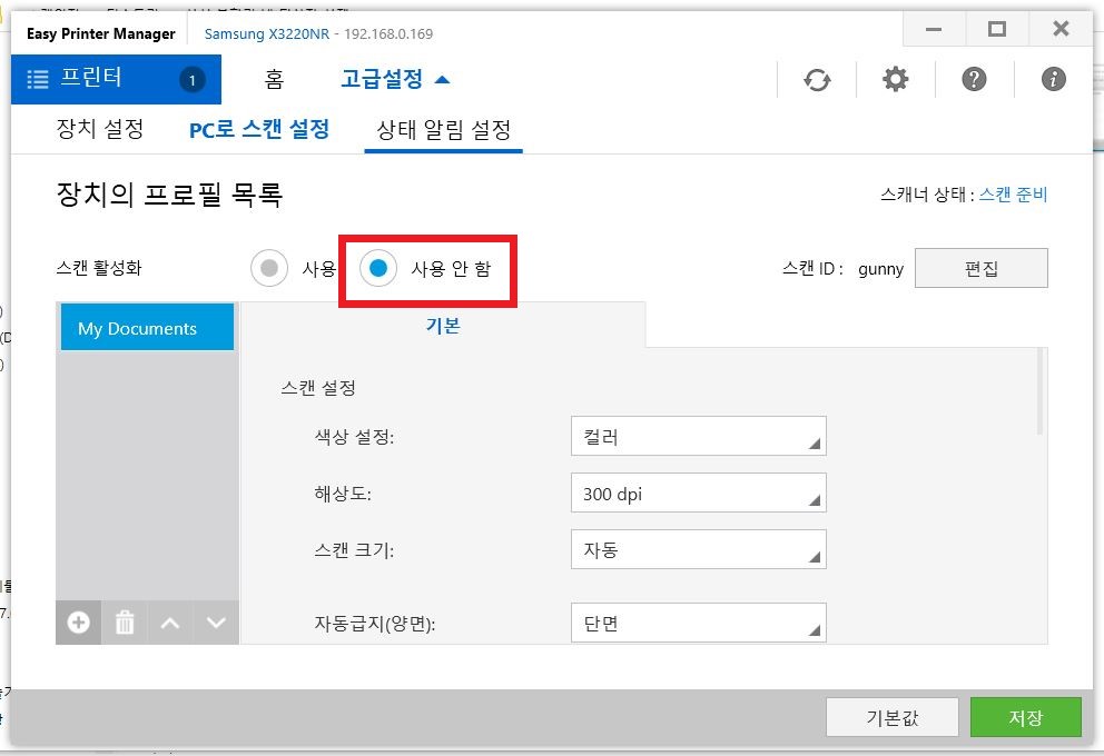 ▼⑩ 고급설정 → PC로 스캔 설정을 클릭하여 들어가 줍니다.