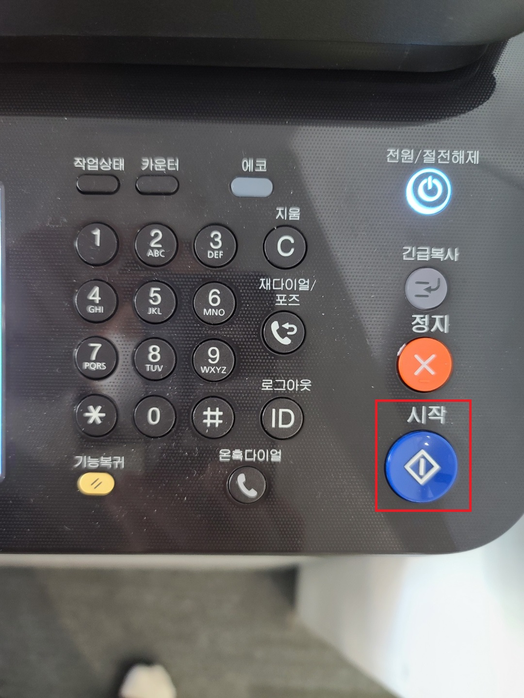 ▲18. 복합기에 시작버튼을 클릭하여 스캔을 시작합니다.