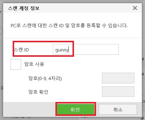 ▲11. 스캔 ID에 사용자가 알아볼 수 있도록 이름을 넣어둡니다.