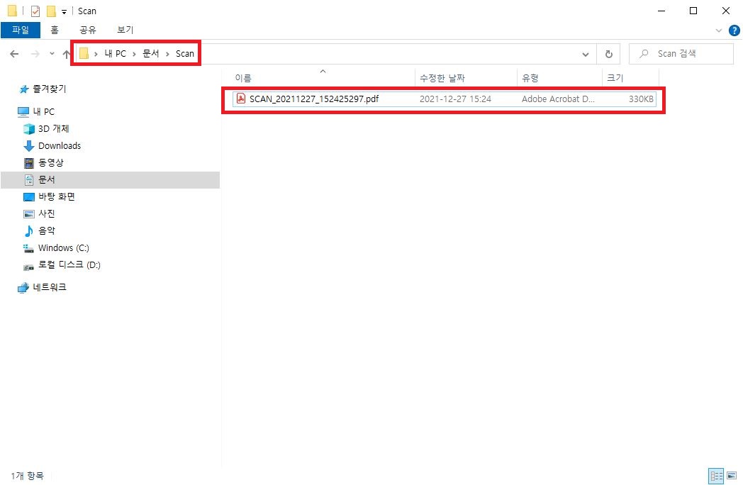 ▲19. 10번단계에서 입력했던 경로에 들어가서 스캔파일이 생성되었는지 확인합니다.