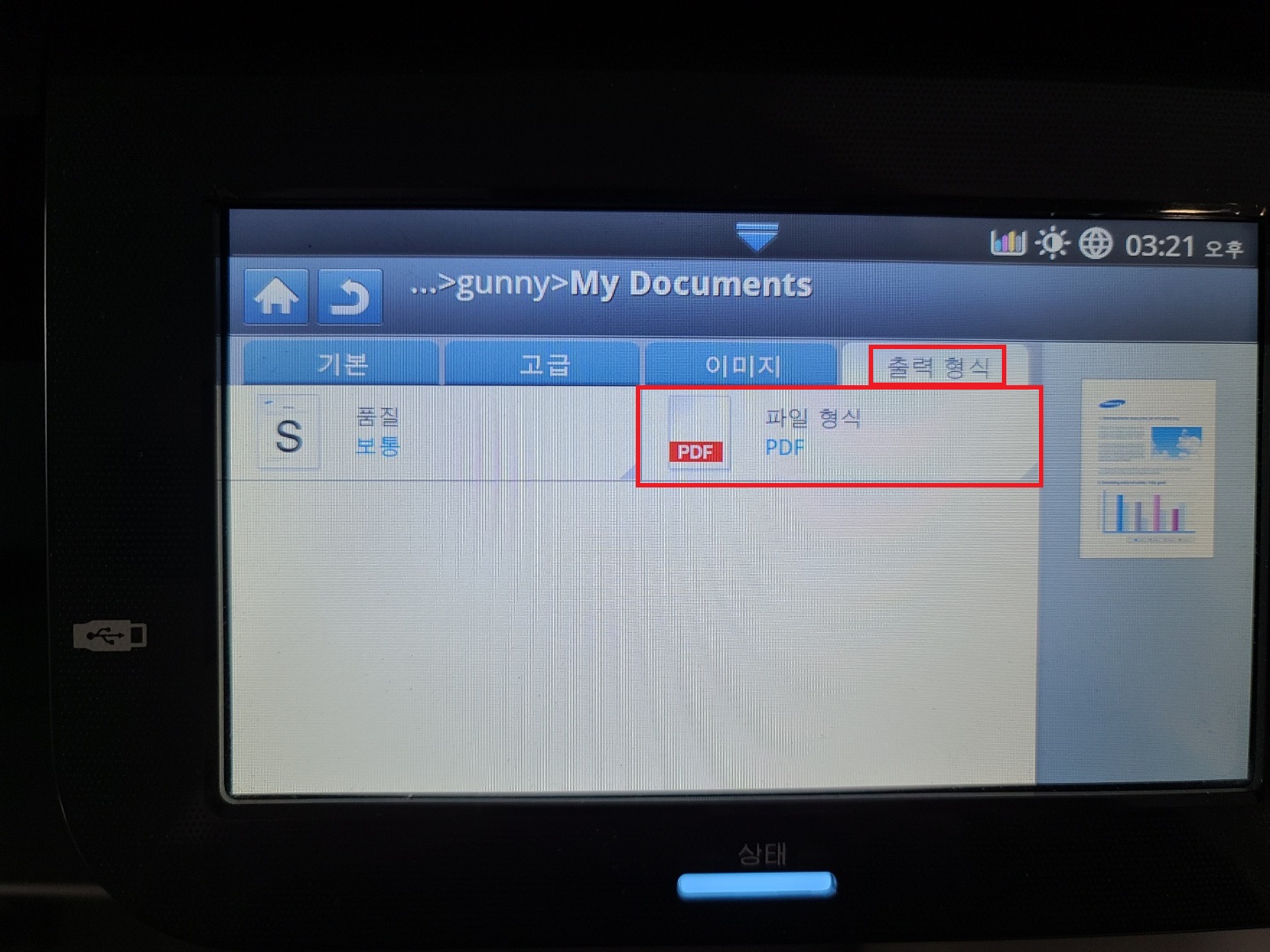 ▲2-1. 출력형식 → 파일형식을 터치합니다.